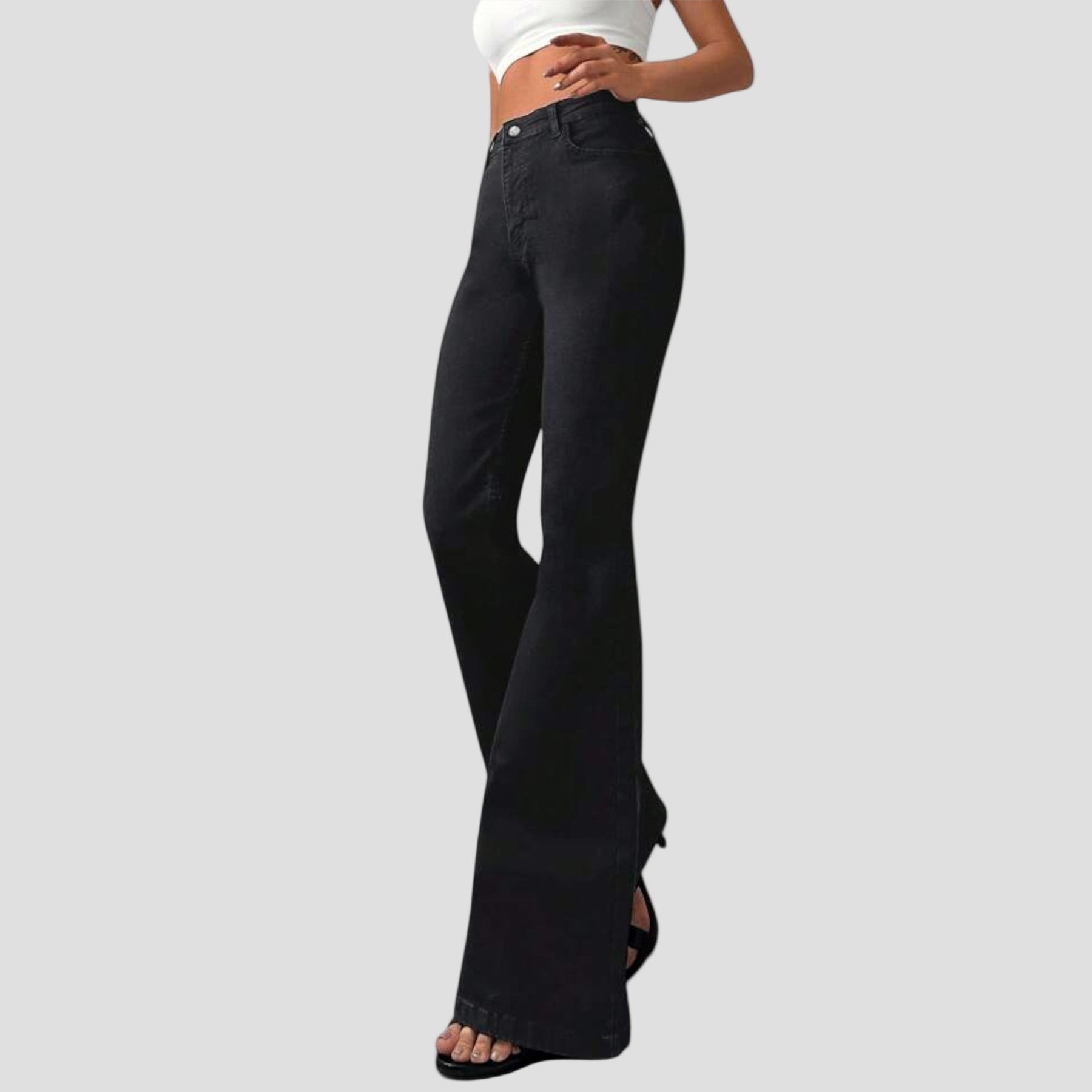 Flare modelis tinka įvairių tipų figūroms, sukurdamas ilgą ir subalansuotą siluetą.