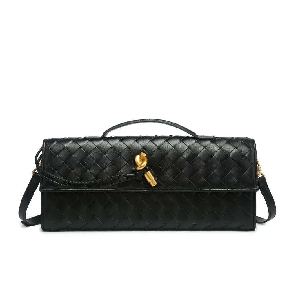 Prabangi pynėta rankinė puikiai tinka iškilmingiems renginiams ir ypatingoms progoms. Rankinė pasižymi rankų darbo pynės tekstūra, nepriekaištinga apdaila ir auksiniais akcentais, kurie suteikia jai glamūro ir išskirtinumo. Kompaktiška ir elegantiška, ji yra praktiška, bet nepraranda išskirtinio stiliaus, todėl puikiai tinka vakariniams ir oficialiems renginiams.