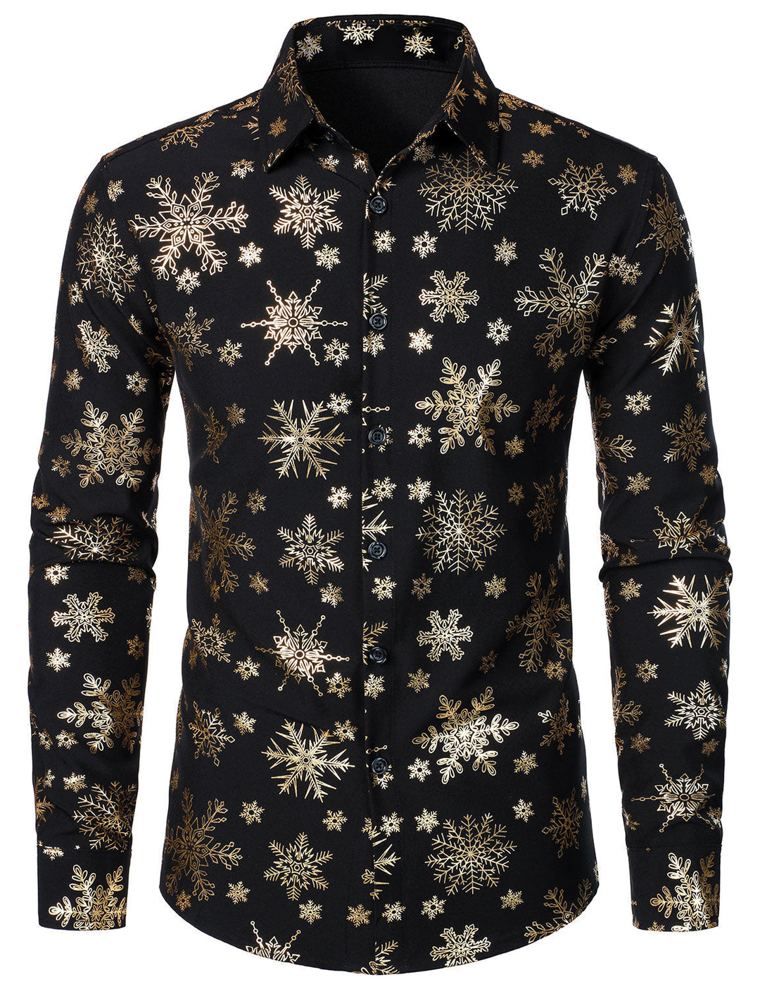 Vyriški ilgarankoviai marškiniai su auksinėmis kalėdinėmis snaigėmis