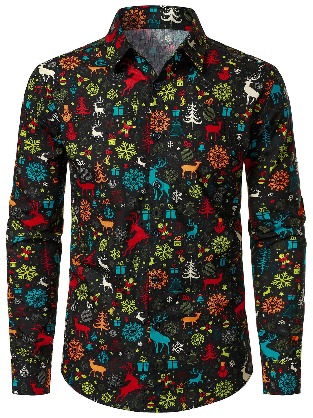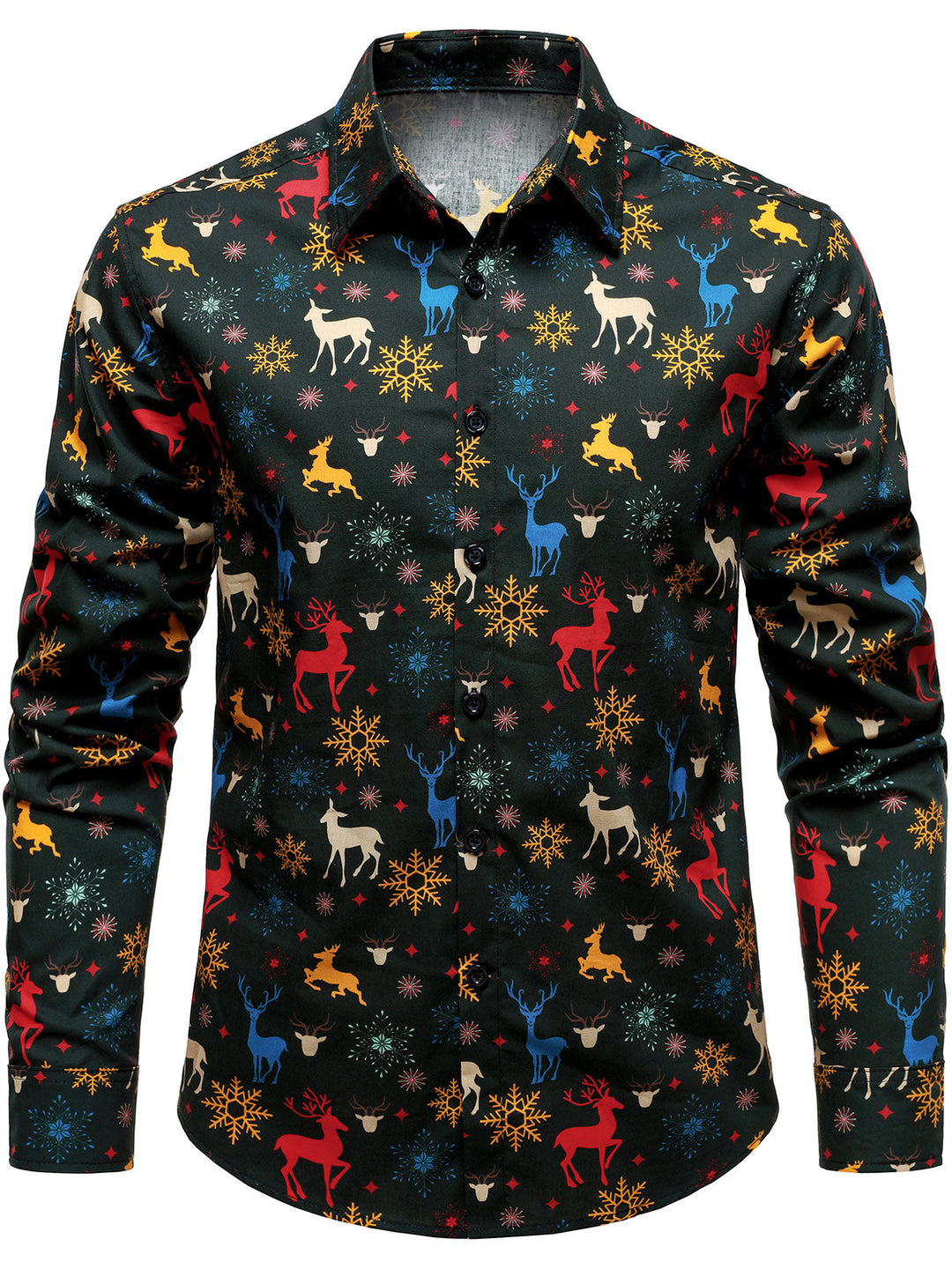 Vyriški kalėdiniai marškiniai su šventiniais elniais ilgomis rankovėmis