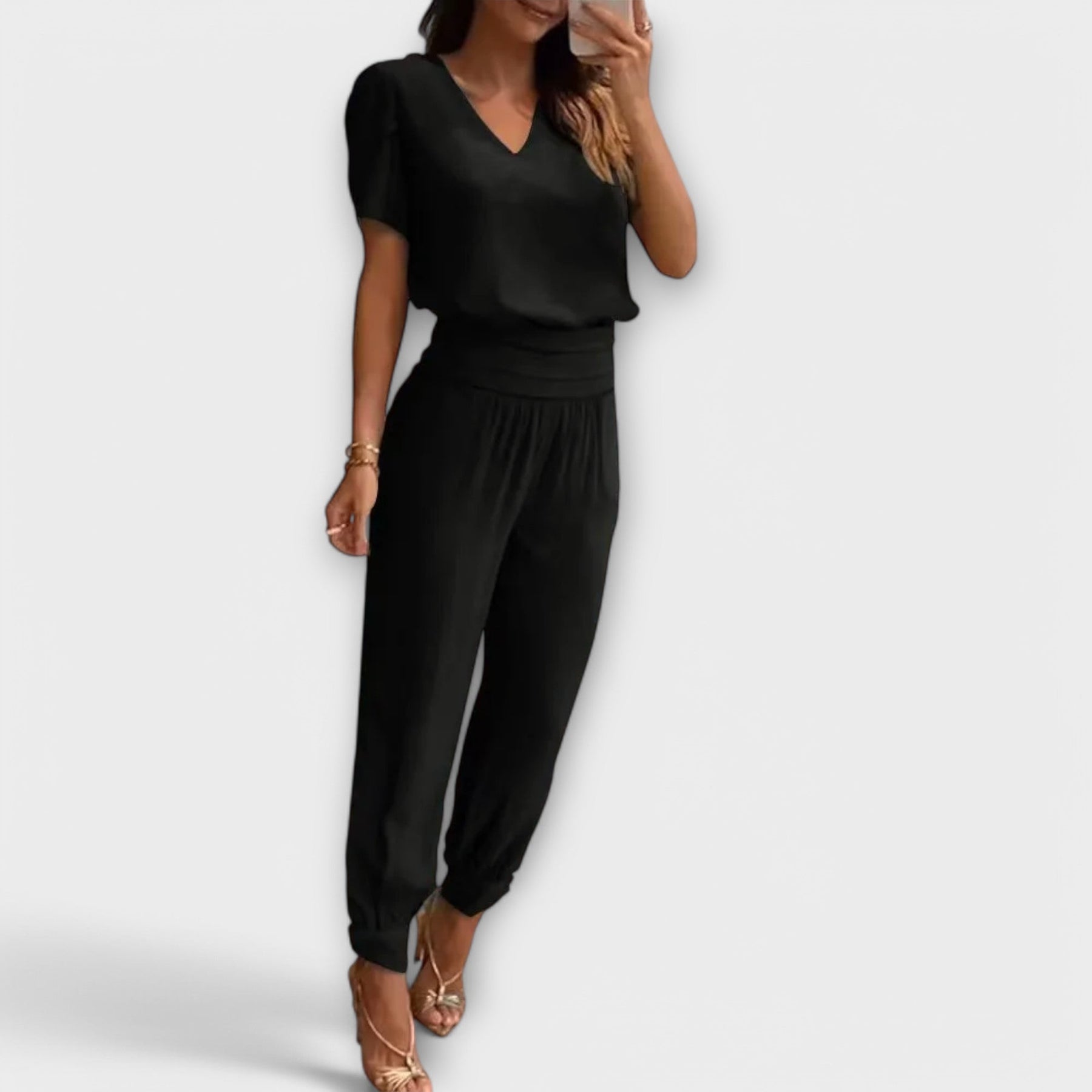 Irmelin – Elegantiškas Komplektas su Viršumi ir Kelnėmis sujungia modernų dizainą su aukščiausiu komfortu. Formą pabrėžia siluetas akcentuoja figūrą, o aukštos kokybės medžiagos suteikia malonų dėvėjimo jausmą. Nesvarbu, ar tai būtų atsipalaidavęs pasivaikščiojimas po miestą, ar formalus susirinkimas – šis komplektas yra puikus pasirinkimas įvairiems stiliams.