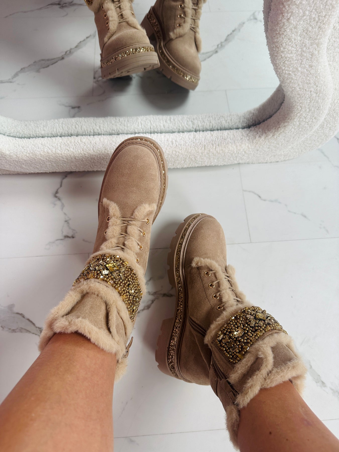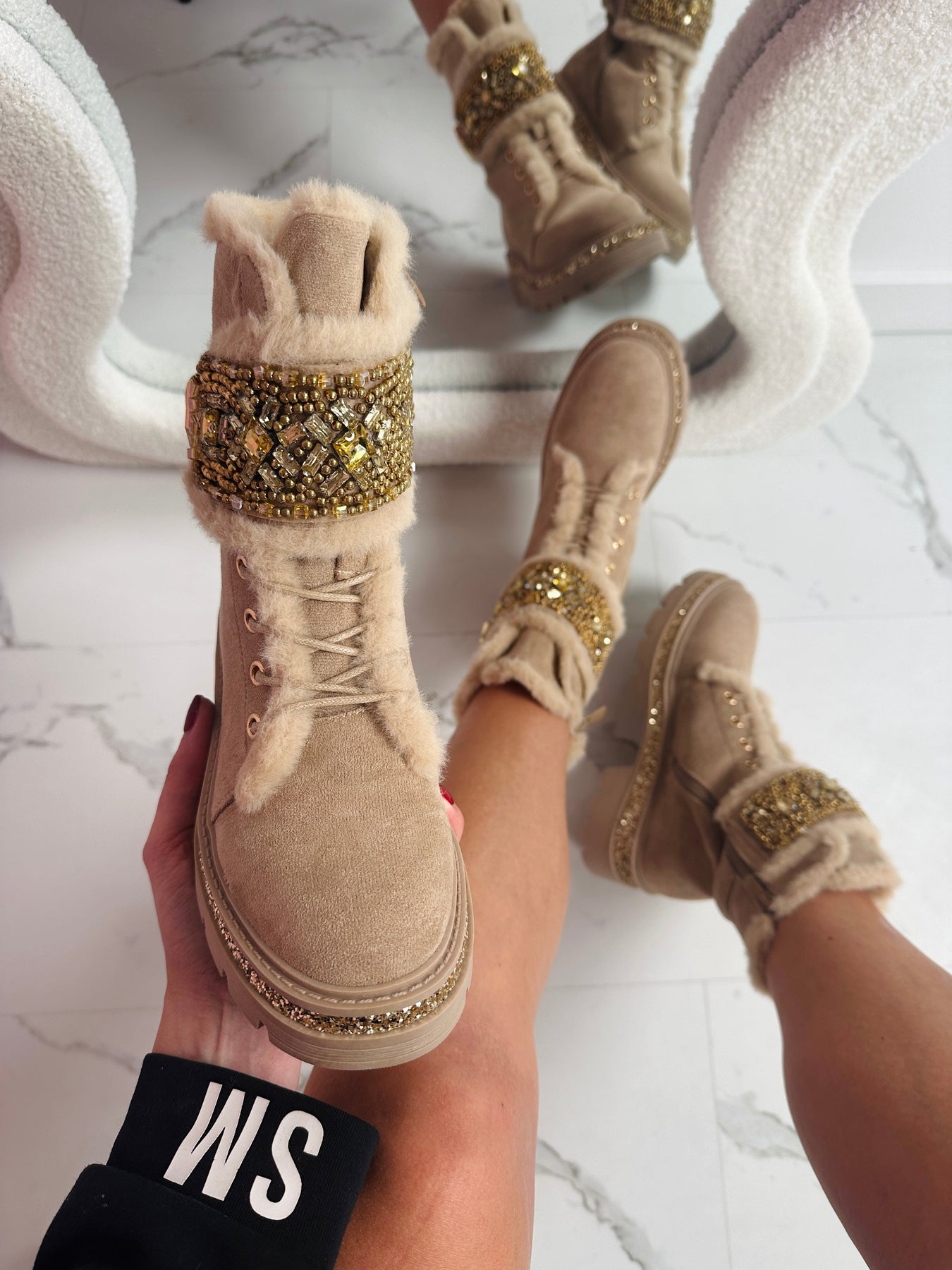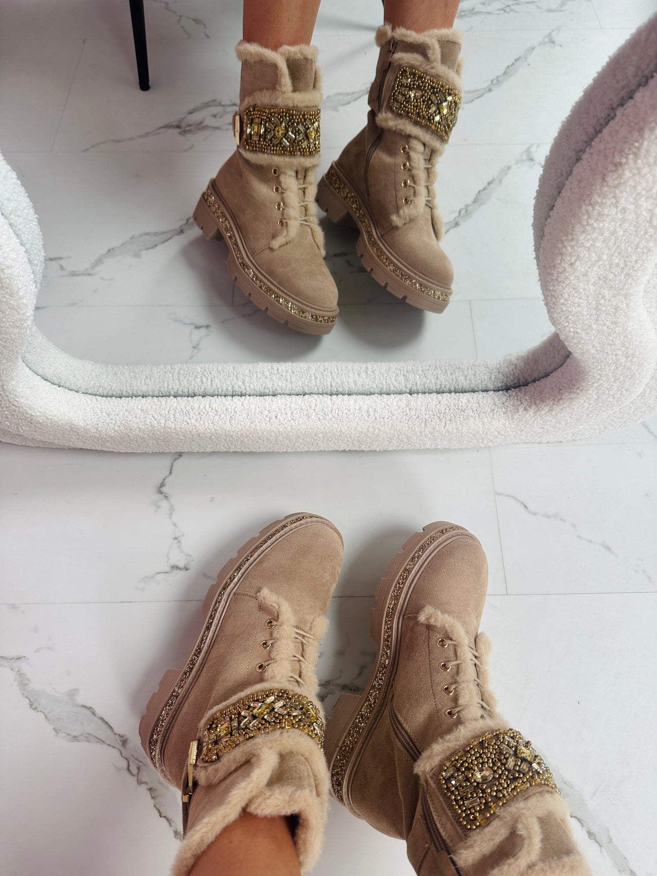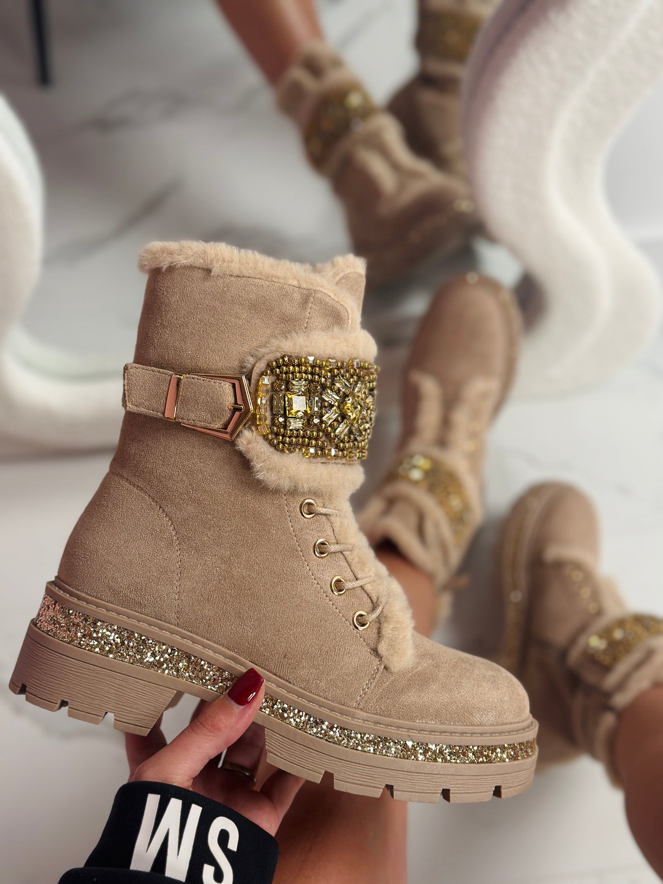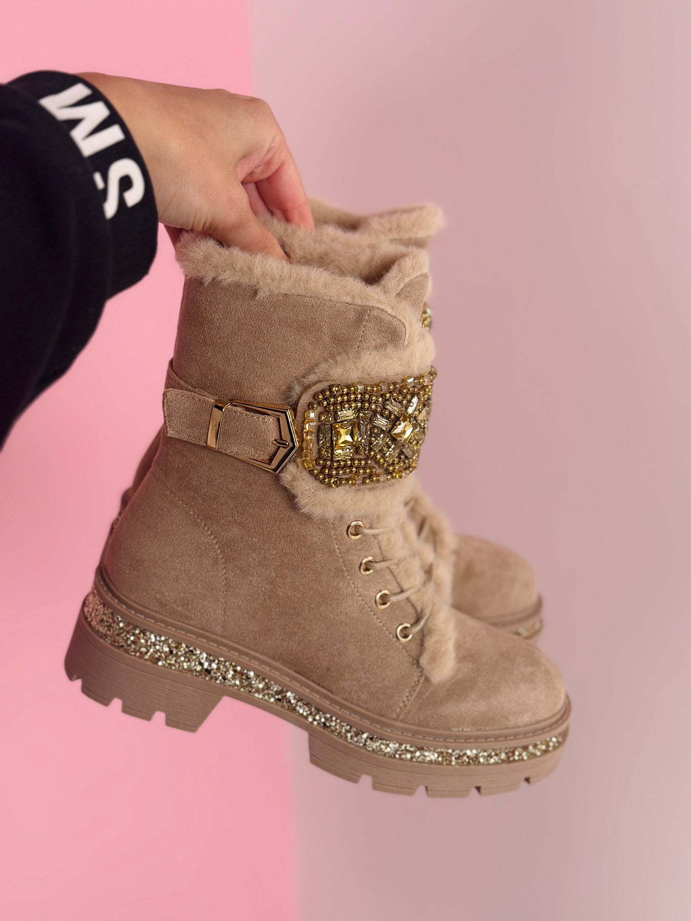 Akmuo Detalės Batai suteikia tavo įvaizdžiui prabangos atnaujinimą su blizgančiomis akmens detalėmis ir švelniu dirbtiniu kailiu. Pagaminti iš minkštos suedine medžiagos, šie batai derina stilių su patogumu .