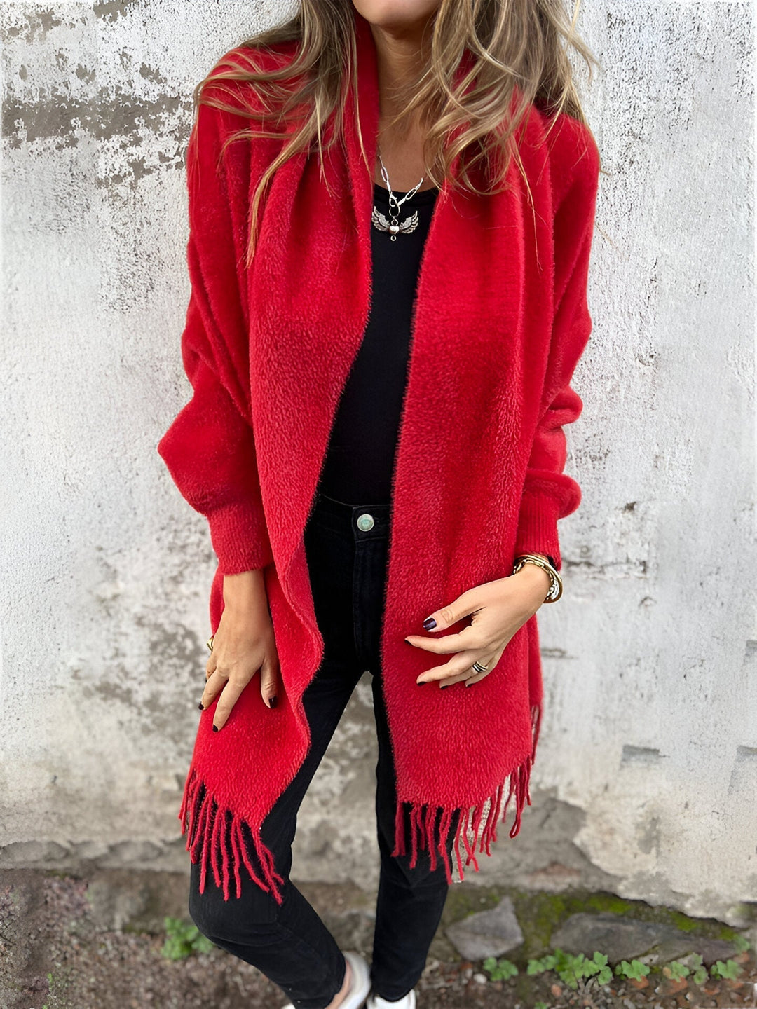 Sarai - Laisvalaikio frandžuota liemenė su ilgomis rankovėmis