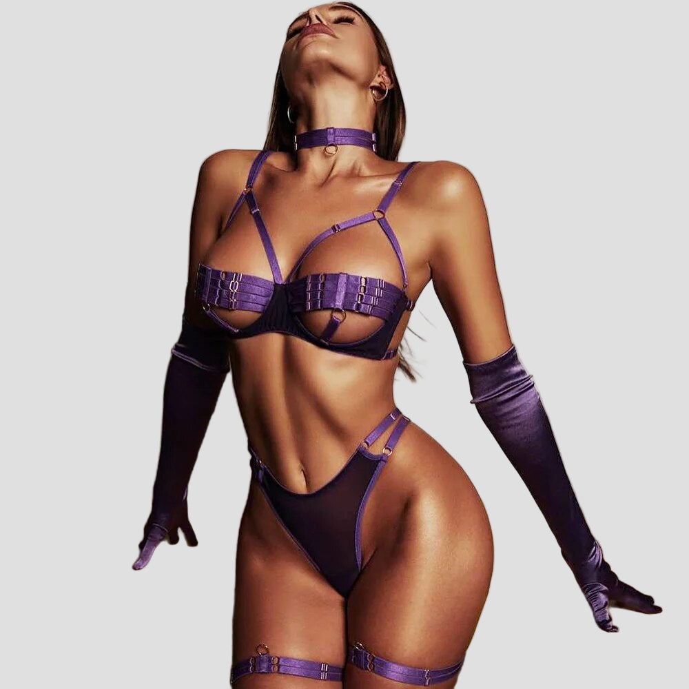 Atraskite „Amanda“ | 4 dalių apatinio trikotažo komplektas, kuriame elegancija, komfortas ir stilius sudaro tobulą harmoniją. Šis išskirtinis komplektas, kurį sudaro liemenėlė, kelnaitės, apykaklė ir dirželiai, yra ne tik viliojantis ir seksualus apatinis trikotažas, bet ir prabangos pojūtis, kuris sužavės bet kurią moterį.